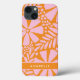 This iPhone case features a colourful pink and orange abstract flower pattern. Personalise it with your name, set in a simple, modern font.