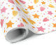 Pink Orange Watercolor Stars Hearts Pattern Wrapping Paper