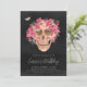 Pink Orchid Floral Skull Halloween Birthday Party Invitation