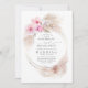 Pink roses and blush orchids pampas grass frame modern wedding invitations.