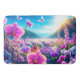 This bath mat has pink orchids on it.