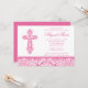 Pink Ornate Cross Damask Girl First Holy Communion Invitation