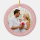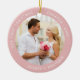 Pink Our First Christmas Engaged Custom Photo Ceramic Ornament