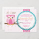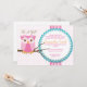 Adorable baby shower/birth announcement cards, features pink owl image with multicolored back ground, can be customised with your own text.