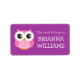 Cute book labels featuring a little, pink owl on a purple background. Customisable text "This book belongs to [Name and Surname]". Ideal for tagging a little girl's school books.
