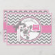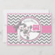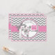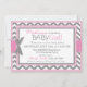 Chic grey and white chevron print with a pink owl perched on oak branch and 3D-look bow and ribbon trim girl baby shower invitation card.