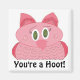A cute pink owl with big green eyes and a darker pink beak. A fun saying 'You're a Hoot" This can be changed if so desired.