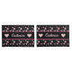 whimsical pattern of light pink owls, soft purple moons, and playful polka dots and stars on a midnight black background.