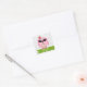 A sticker featuring an illustration of a pink owl with patchwork belly. Owl is wearing pink sunglasses and a pink rose on its head. Personalise with your name and address.