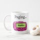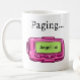 A fun personalised pager mug for anyone who lives by alerts, call shifts, and being reachable. In colourful pink, the pager illustration features a bright green screen where the name can be customised. A lighthearted gift for healthcare teams, medical imaging staff, residents, students, and anyone on call in other fields too. Above the pager, it says “Paging…”, and the screen can be personalised with a name.
