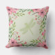 Pink Painted Flowers Green Dragonfly Cushion