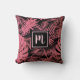 Bring a bit of elegant tropical hospitality into your home with this chic, modern throw pillow sporting a handwritten monogram initial over a graphic palm leaf pattern of dusty rose pink gradations, overlaying black. Makes a fun and stylish statement every time you relax on it. A great addition to your living room or bedroom, as well as a wonderful gift for a friend!