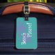 Teal Luggage tag with pink palm tree. Perfect luggage tag for that long awaited vacation.
