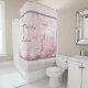 Pink Paris Eiffel Tower and French Text Shower Curtain