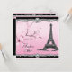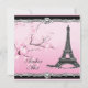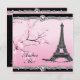 Pink Parisian Eiffel Tower Wedding Invitations are decorated in vibrant shades of pink, black, silver, white and a just a hint of chocolate brown. The front features pink cherry blossom branches for an added elegant effect. In a distance is the Eiffel tower. The top and bottom of the card have silver stylish jewels. Centred between the jewels is a silver pearl with a swirl decor. The back features the same jewel and pearl border with a black background. The text is in matching light pink, cursive fancy font. You can click the orange customise button below the demo card above and change the text colour, style, size and wording to what ever you prefer. You can also use the personalise feature, found to the right of it if you are satisfied with the text colour, style and size. Just change the wording to match your wedding day. After you are done, glance over the front and back of the demo to see what the results will look like before ordering. Each invitation comes with a white envelope. If you love this design, click on "natureprints" or "store" above to find matching RSVP cards, wedding seals and much more. You'll also find peacock, damask and other popular themed wedding stationary.