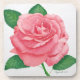 Hard plastic coasters with a cork back with a pink rose design.