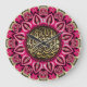 Custom Art Wall Clock : Unique design in ornate hot pink and gold geometric flower with a beautiful Arabic calligraphy in the centre, for daily Muslim blessings at home or office .
