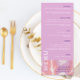 Pink Pastel Abstract Art Wedding Menu has a perfect touch of modern and trendy pastel wedding. The abstract art features a blend of colours coral, pink and white that is balanced, not too bold nor light complementing the white and purple typography. With the modern typography, it creates a new style apart from the traditional wedding or a typical wedding.