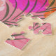 Multilayer floral pattern with coloured flowers and branches on pink background