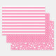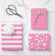 Three patterns in pink and white: basic stripes, polka dots and random spots.
