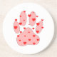Pink Paw Print With Hearts Coaster