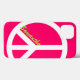 A pink coloured Peace sign iPhone case with custom name in lime green.