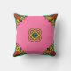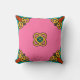 Pink Peace Sign Kaleidoscope Throw Pillow. Orange, Teal, Gold, Pink.