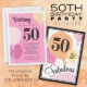 50 and Fabulous custom pink, peach, black and white animal print balloons birthday invitation. Get this party started because there's fun and frolicking for all once that 50th birthday rolls around.