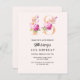 A modern, stylish and glamourous invitation for a 18th birthday party. A peach coloured background. Decorated with foral numbers in faux gold and pink. The name is written with a modern hand lettered style script. Personalise and add your party details.