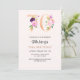 A modern, stylish and glamourous invitation for a 70th birthday party. A peach coloured background. Decorated with foral numbers in faux gold and pink. The name is written with a modern hand lettered style script. Personalise and add your party details.