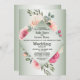 Pink Peach Roses Rustic Green Geometric Wedding Invitation