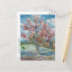 A fine art postcard with the post-impressionist painting, Pink Peach Trees, also known as, In Memory of Mauve (1888) by the Dutch artist Vincent Van Gogh (1853-1890). A fruit tree with pink blossoms on a sunny spring day with a blue sky.