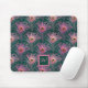 Pink Peacock Feathers and Monogram on Deep Green Mouse Pad