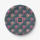 Pink Peacock Feathers and Monogram on Deep Green Paper Plate