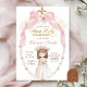 Pink Pearl Bow Coquette Girl First Holy Communion Invitation