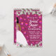 This elegant pink bridal shower invitation features a border of pearls on a beautiful pink faux glitter background with an African American woman in pink and white dress. This invitation will give a first impression of style and elegance for your big event.