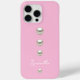 Turn heads with this adorable pink iPhone case featuring a vertical row of shimmering pearl accents and your personalised name in elegant script. This case blends sweet feminine style with a sleek, modern edge, offering both charm and protection for your phone. Perfect as a custom gift for teens, bridesmaids, or anyone who loves stylish and unique tech accessories.
