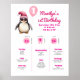 Pink Penguin First Birthday Milestone Poster