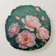 Pink Peonies Artwork on Emerald Green Round Cushion
