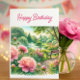Pink Peonies at Park Happy Birthday Greeting Card