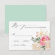 Elegant and romantic botanical chic wedding RSVP card design. Card reverse in coordinated aqua green colour.