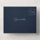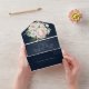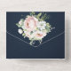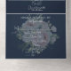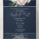 A gorgeous bouquet of pink Peonies against a navy background creates an outstanding contrast on this wedding invitation.