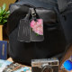 I was happy with the acrylic tag but it came with a thin leather strap to attach the tag to luggage (like a cat collar). I replaced the strap with a metal ring off of a key ring as the leather strap would come undone or break easily as luggage is sometimes handled without much care by airlines. Printing is great. Colours and positioning of the design I put on the tag were perfect. Very pleased.