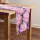 Table runner to accent your table decor is shown with a pretty pink peonies print on a black background colour.