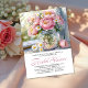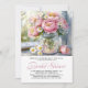 A charming bouquet of pink peonies, white daisies, and baby's breath rests in a clear mason jar filled with water, its stems elegantly visible through the glass. Set on a sunlit windowsill with scattered petals and a single peony nearby, the scene radiates soft romance and rustic elegance—perfect for a bridal shower celebration. The mason jar adds a touch of vintage charm, evoking a cozy, heartfelt gathering where love blooms as beautifully as the flowers. The back of the card is pale pink. Personalize with your information.