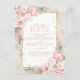 Pink Peony Floral Gold Script & Frame Delay Date Postcard
