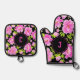 Pink Peony Floral Monogram Oven Mitt & Pot Holder Set