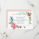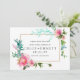 Pretty pink peonies nestled in modern botanical foliage decorate a chic gold frame. The leaves and vines are deep green to turquoise blue. The text layout and fonts are modern and fresh. The back is also pink. This save the date invitation coordinates with the Pink Peony Save the Date Collection. It contains envelope stickers, envelope liners and other accessories you can use to make your Save the Date unique and special