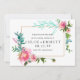 Pretty pink peonies nestled in modern botanical foliage decorate a chic gold frame. The leaves and vines are deep green to turquoise blue. The text layout and fonts are modern and fresh. The back is also green. This save the date invitation coordinates with the Pink Peony Save the Date Collection. It contains envelope stickers, envelope liners and other accessories you can use to make your Save the Date unique and special
