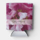 Keep your canned drinks cool at your bridal shower or marriage reception with the pretty Pink Peony Flower Wedding Can Cooler. Personalise it with the names of the bride and groom and date to create one of a kind party favours. This elegant custom flowery can cooler features a digitally painted floral photograph of a magenta pink peony flower blossom with curly petals.
